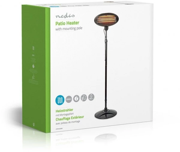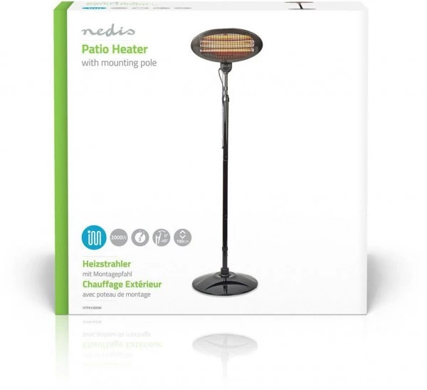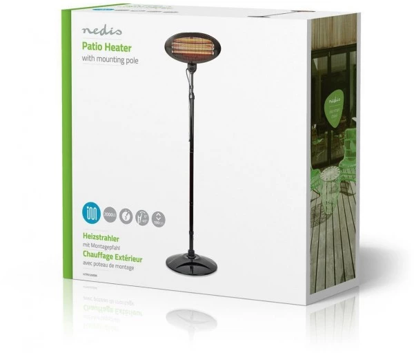 Zu den Sicherheitsfunktionen gehören Überhitzungsschutz, Kippschutz und Spritzwasserschutz gemäß IP24. Die Hitze kann in einem Winkel von 0 – 45 Grad ausgerichtet werden.