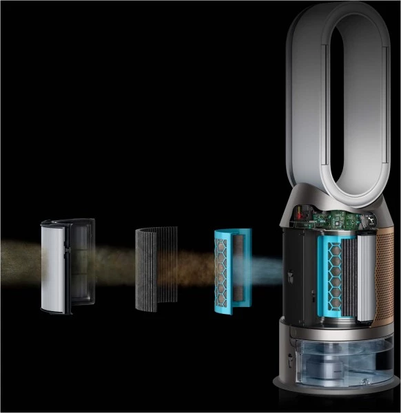 Der Dyson Purifier Humidify+Cool™ verfügt über ein versiegeltes 360˚-Filtrationssystem. Es kombiniert einen Aktivkohlefilter zum Entfernen von Gasen und Gerüchen und einen versiegelten HEPA-Filter zum Entfernen von 99,95 % der ultrafeinen Partikel.