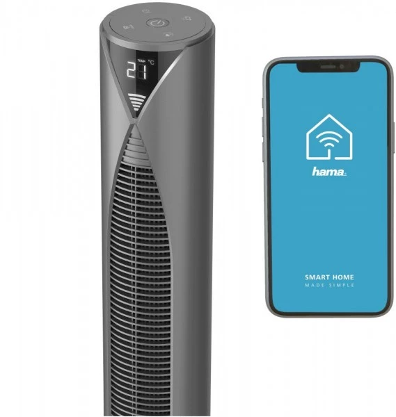 Smarte Erfrischung: Steuern Sie den Säulenventilator per Hand, Fernbedienung, App oder Sprachbefehl. Sie können den Ventilator auch von unterwegs programmieren und mit anderen Smart-Home-Geräten von Hama verbinden, dann erwartet Sie nach der Arbeit ein angenehm kühles Zuhause.