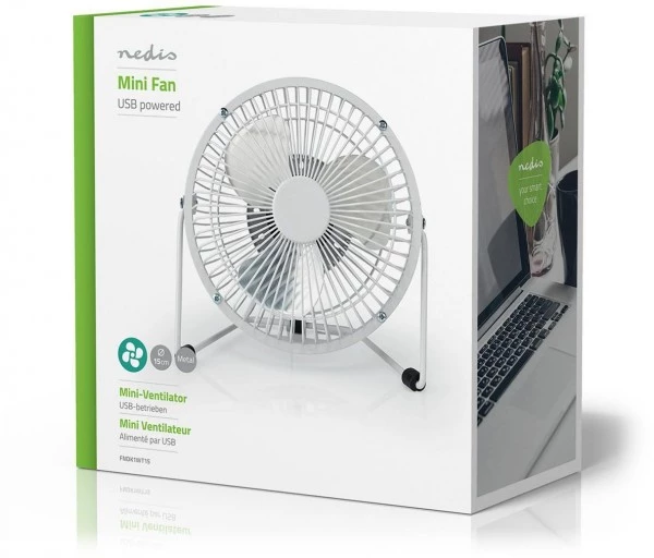 Schließen Sie diesen Nedis® Mini-Ventilator einfach an Ihr Notebook, eine Powerbank oder ein anderes USB-Gerät an. Dank ultraschlankem Design findet er auch auf einem vollen Schreibtisch Platz – damit Sie bei der Arbeit stets einen kühlen Kopf bewahren.